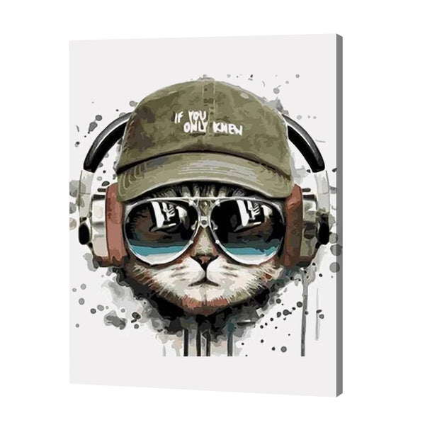 Turn up the volume with this ultra-cool paint by numbers kit featuring a laid-back cat rocking headphones, shades, and a cap that says it all. A must-have for music lovers and feline fans, this trendy artwork adds a fun, urban vibe to any room.